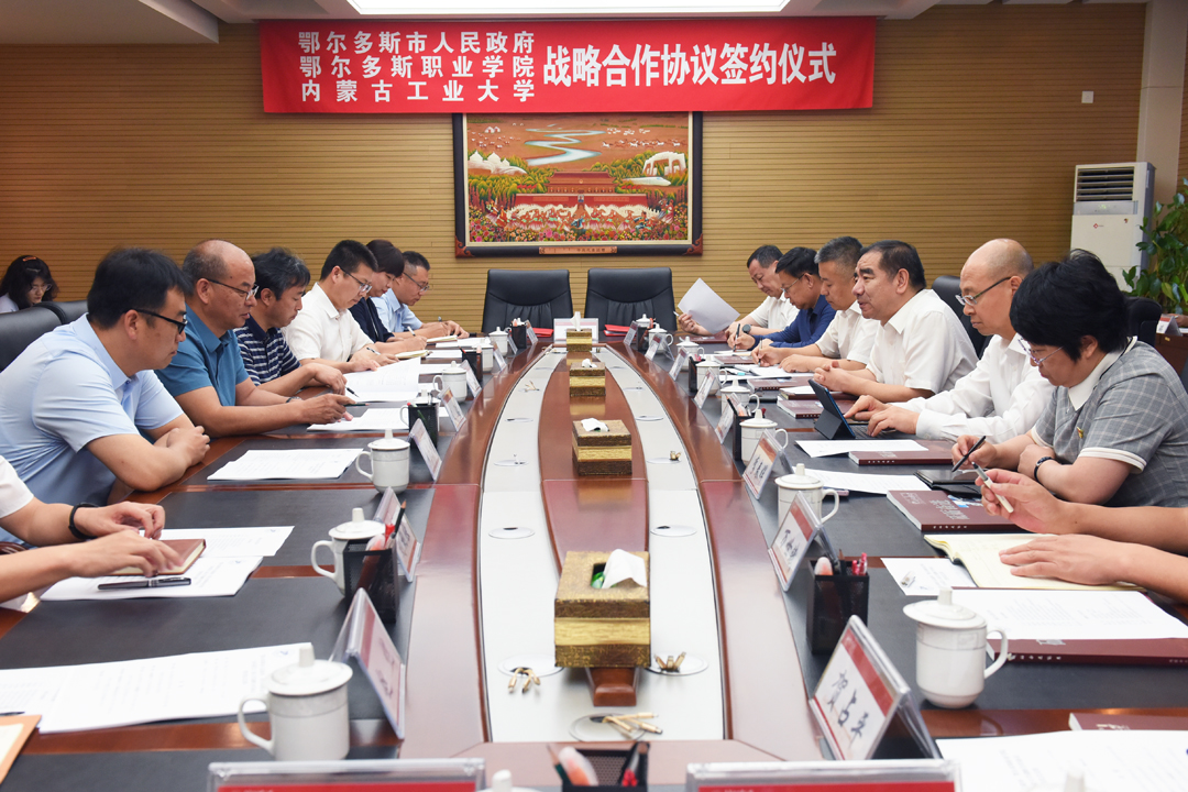 6月29日上午,鄂尔多斯市人民政府副市长王心宇一行来我校调研交流,并与我校签署战略合作协议。校党委副书记、校长姚德,校党委委员、副校长韩永全与相关部门处级干部参加签约仪式。韩永全主持会议。