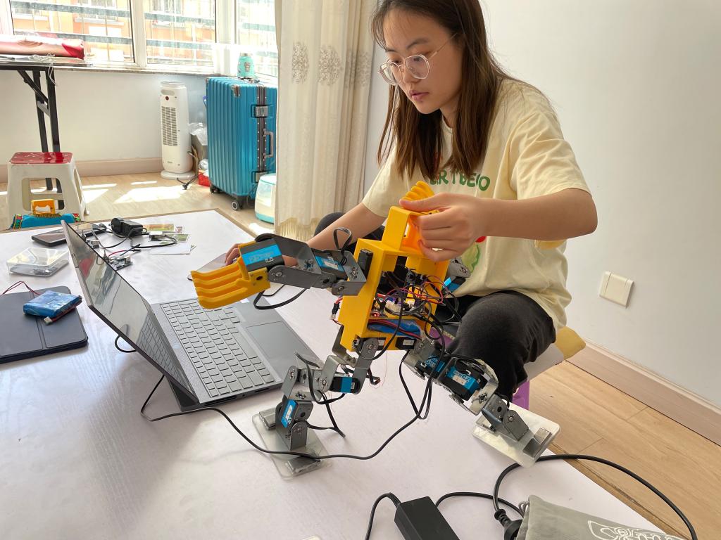 舞蹈机器人专项赛涉及机电一体化技术、检测和传感技术、精密机械加工和精密机械传动技术、现代控制技术、管理技术、计算机程序控制技术等多个方面的前沿技术。我校参赛机器人的设计灵感源于蒙古族舞蹈,比赛的同时也充分展示了我区的文化特色。赛事准备期间,学生因疫情无法返校,指导教师为学生邮寄了部分电子器件,同学们克服困难,在家中完成场地制作以及机器人舞蹈动作设计、视觉识别等工作,并最终凭借出色的线上技术展示和问辩获得佳绩。