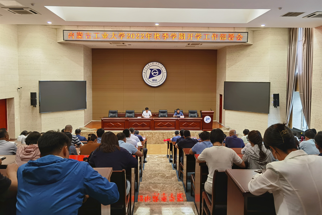 8月23日,学校在新城校区明德楼第二报告厅召开2022年秋季学期开学暨疫情防控工作部署会。校党委书记孙国权主持会议。校党委副书记栗文义,校党委委员、纪委书记、监察专员阿力坦嘎日迪,校党委委员、副校长韩永全,校党委委员、副校长宝音,各职能部门处级领导干部,各学院书记、院长、学工副院长及相关工作人员等参加会议。