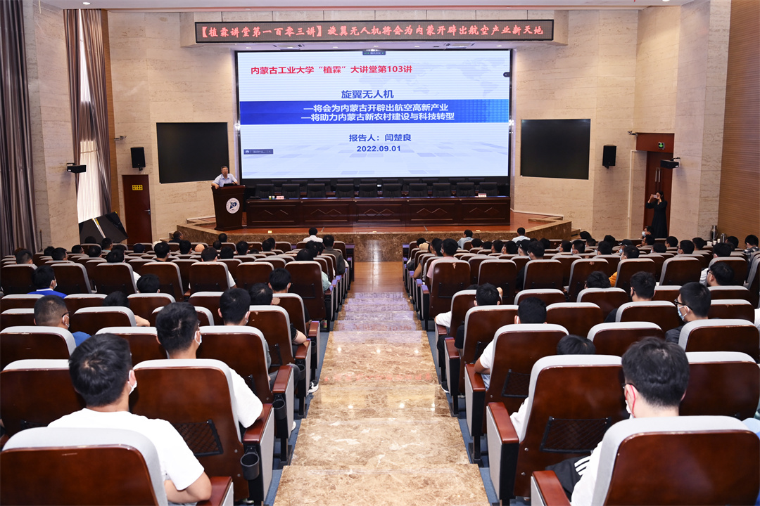 闫楚良院士以“旋翼无人机将会为内蒙古开辟出航空产业新天地”为题,对通用飞机的国内外现状、我国通用飞机的发展前景、内蒙古地区航空发展重点任务以及旋翼无人机的优点、用途、未来发展方向等作了全面讲解,提出了指导性见解。讲座结束后,闫楚良院士与参会师生深入交流了相关学术问题。