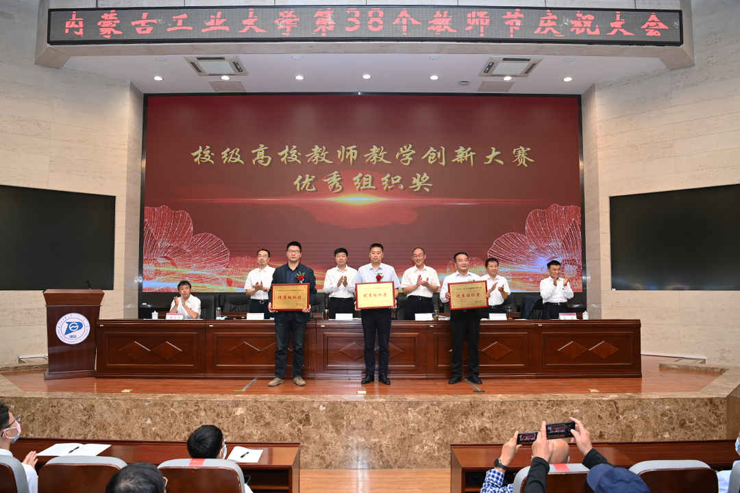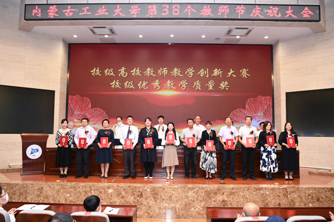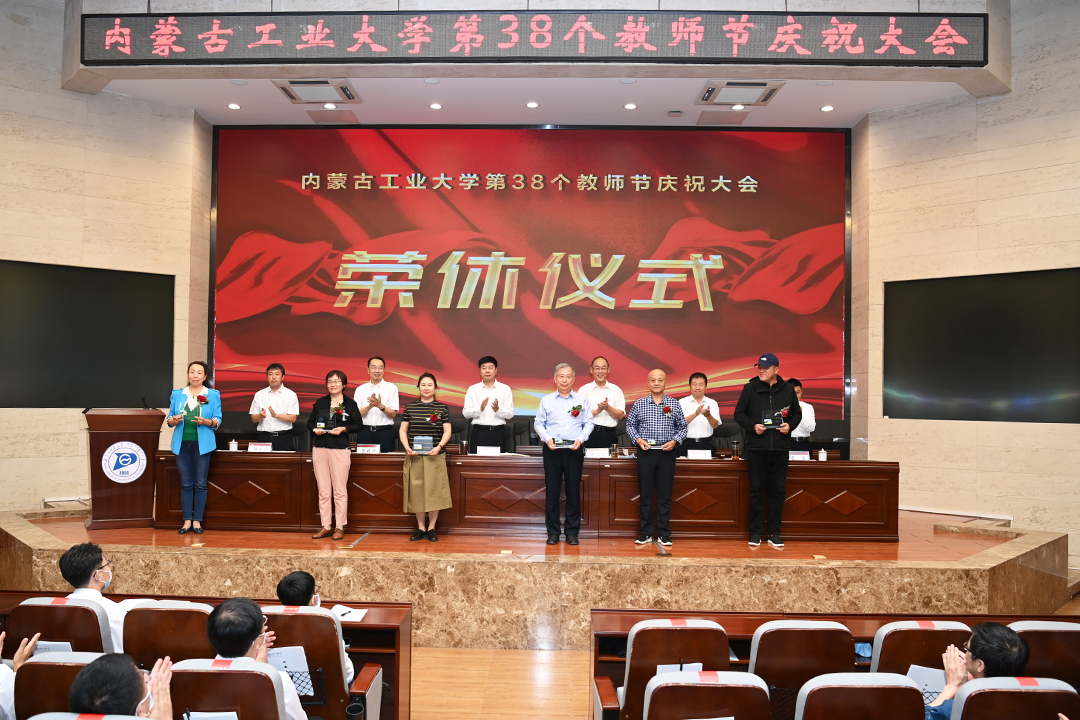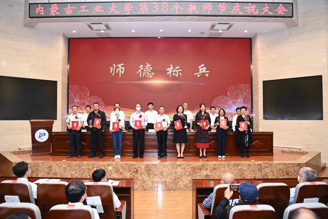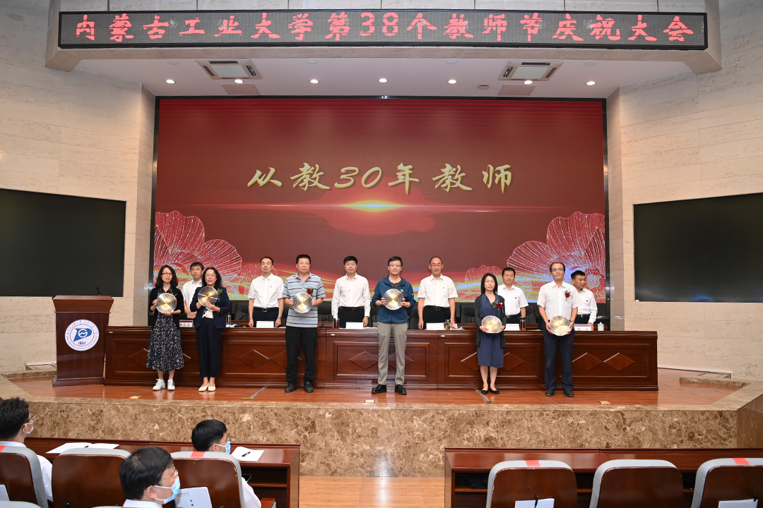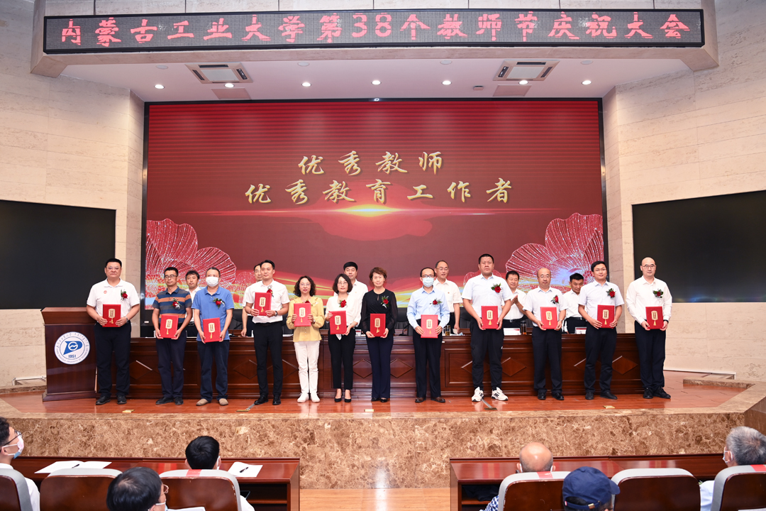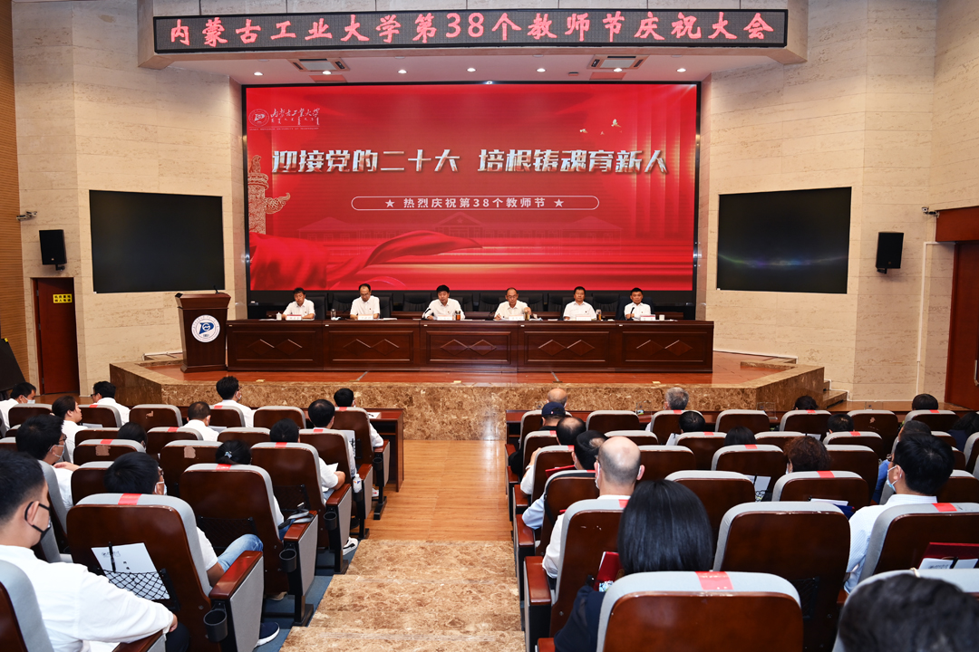 迎接党的二十大,培根铸魂育新人。9月9日下午,学校在新城校区明德楼第一报告厅隆重举行第38个教师节庆祝大会。校党委书记孙国权,校党委副书记栗文义,校党委委员、副校长吕晓琪,校党委委员、纪委书记、监察专员阿力坦嘎日迪,校党委委员、副校长韩永全出席大会。各单位各部门主要负责人,2022年获得全国、自治区和学校重要荣誉的教师代表以及退休教师、从教30年教师、新入职教师和学生代表参加大会。孙国权发表讲话,大会由校党委委员、副校长宝音主持。庆祝大会还通过线上形式面向全校师生同步直播。