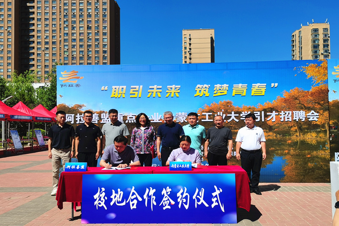 招聘会上,阿拉善盟人力资源和社会保障局局长张晶文详细介绍阿拉善盟“智汇驼乡 善聚英才”引才相关政策待遇,希望我校优秀毕业生扎根阿拉善,成为建设阿拉善的重要力量。随后,我校与阿拉善人力资源和社会保障局签订《内蒙古工业大学毕业生阿拉善盟就业工作站合作协议》《政校合作框架协议》。