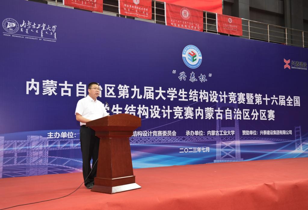 7月7日,由内蒙古自治区大学生结构设计竞赛委员会主办、我校承办的“兴泰杯”内蒙古自治区第九届大学生结构设计竞赛暨第十六届全国大学生结构设计竞赛内蒙古自治区分区赛在我校新城校区卓越体育馆开幕。副校长、土木工程学院院长郝贠洪,内蒙古科技大学土木工程学院党委书记张利敏,内蒙古建筑职业学院建筑工程与测绘学院副院长牛恒茂,自治区大学生结构设计竞赛委员会秘书处秘书长冯斌,兴泰建设集团有限公司党委副书记、行政总监王向延以及相关职能部门负责人、区内高校70余名参赛师生参加开幕式。土木工程学院党委书记张翔主持开幕式。
