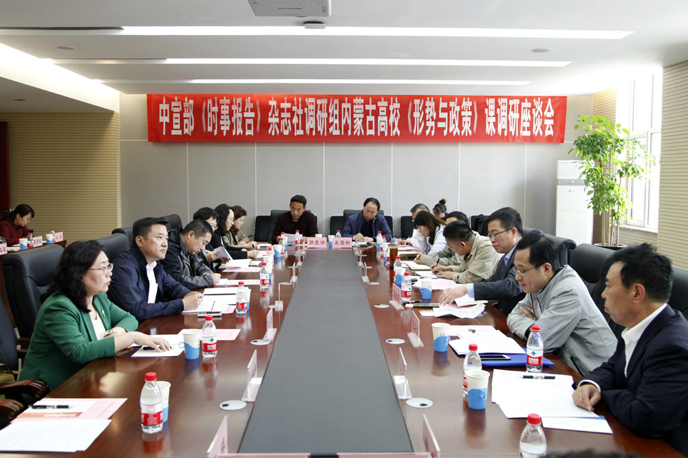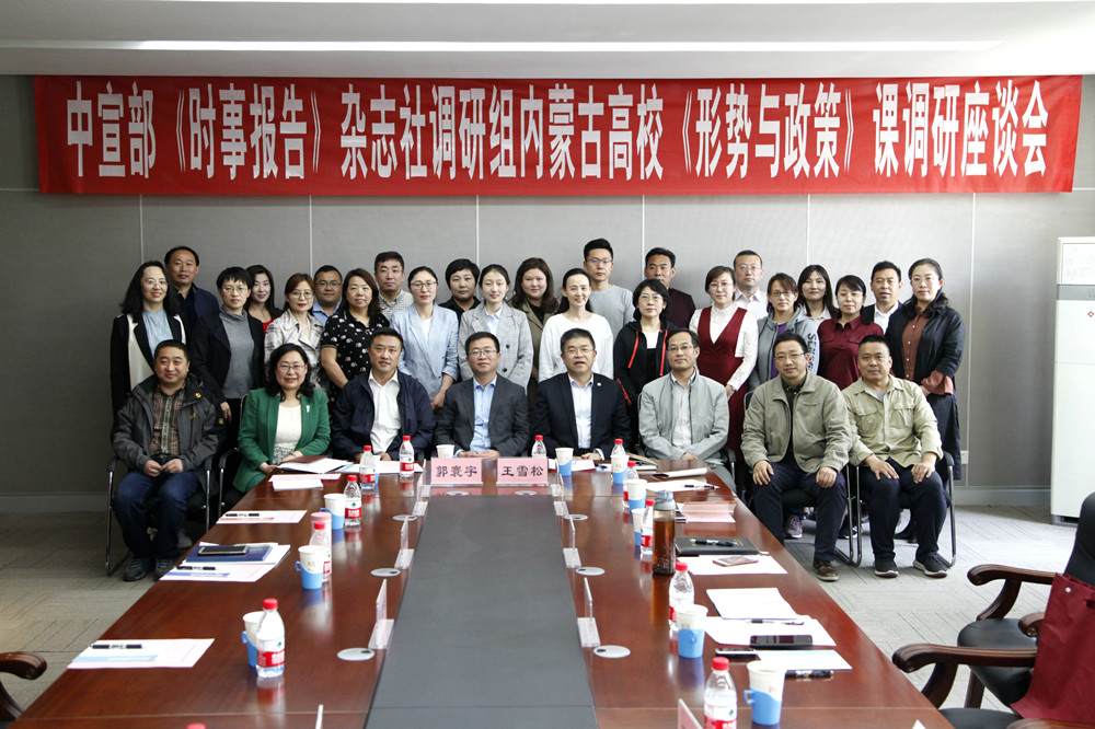 5月14日下午,自治区教育厅在我校召开驻呼高校形势与政策课负责人座谈会,中宣部《时事报告》杂志社大学生版主编张习文、副主编杨小虎、事业发展部副主任王履军,自治区教育厅思想政治与学生工作处处长马跃东,呼市地区各高校形势与政策课负责人,我校党委宣传部、教务处、马克思主义学院相关负责人等30余人参加座谈会。