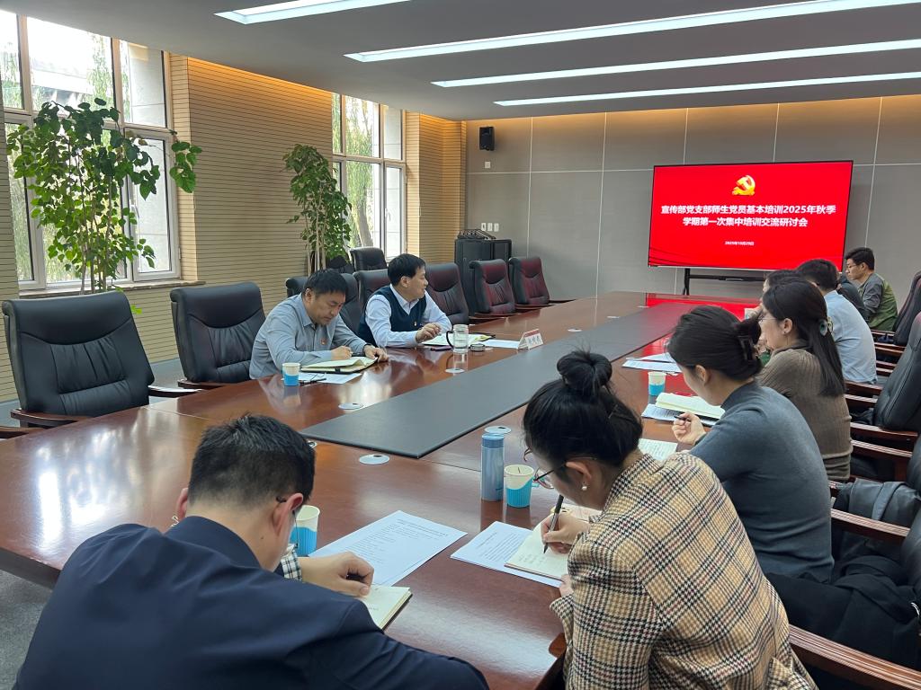 10月29日下午,宣传部党支部召开师生党员基本培训2025年秋季学期第一次集中大课交流研讨会。校党委副书记赵增武作为普通党员参会,党支部书记金燕飞主持会议,支部全体党员参加,机关党委书记史志国列席指导。
