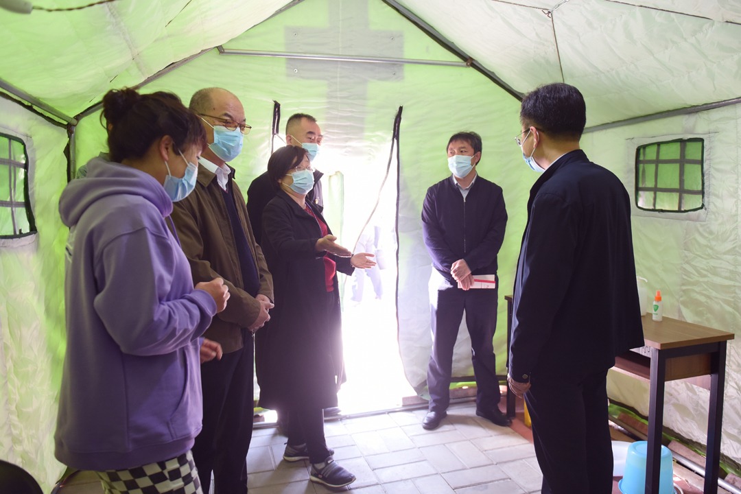 唐勇一行实地考察了我校新城校区校门、馨苑餐厅、防疫物资储备库、校医院、集中隔离场所等重点区域,重点询问了疫情防控各项措施的落实情况以及学生返校后的核酸检测、校园封闭管理、应急处置等各项工作的准备情况,并针对加强校园管理、强化属地联系、落实校内场所“青城码”扫码等具体工作提出了要求。