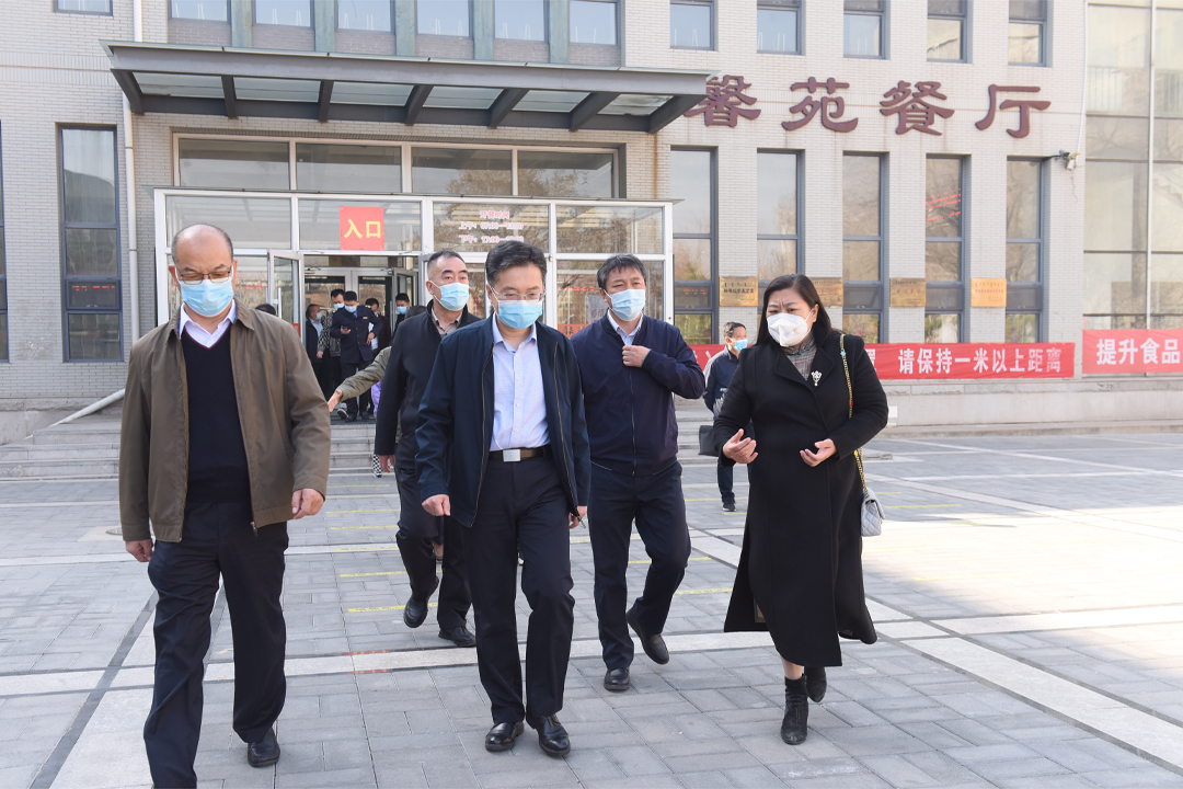 4月7日上午,呼和浩特市包联领导、市委常委、宣传部长唐勇以及呼和浩特市新城区、土默特左旗相关包联领导一行来我校,就疫情防控工作、学生春季学期返校准备情况等进行实地调研督导。校长姚德,校纪委书记、监察专员阿力坦嘎日迪,副校长韩永全,学校疫情防控工作领导小组办公室及相关专项工作组负责人、工作人员等随行调研。