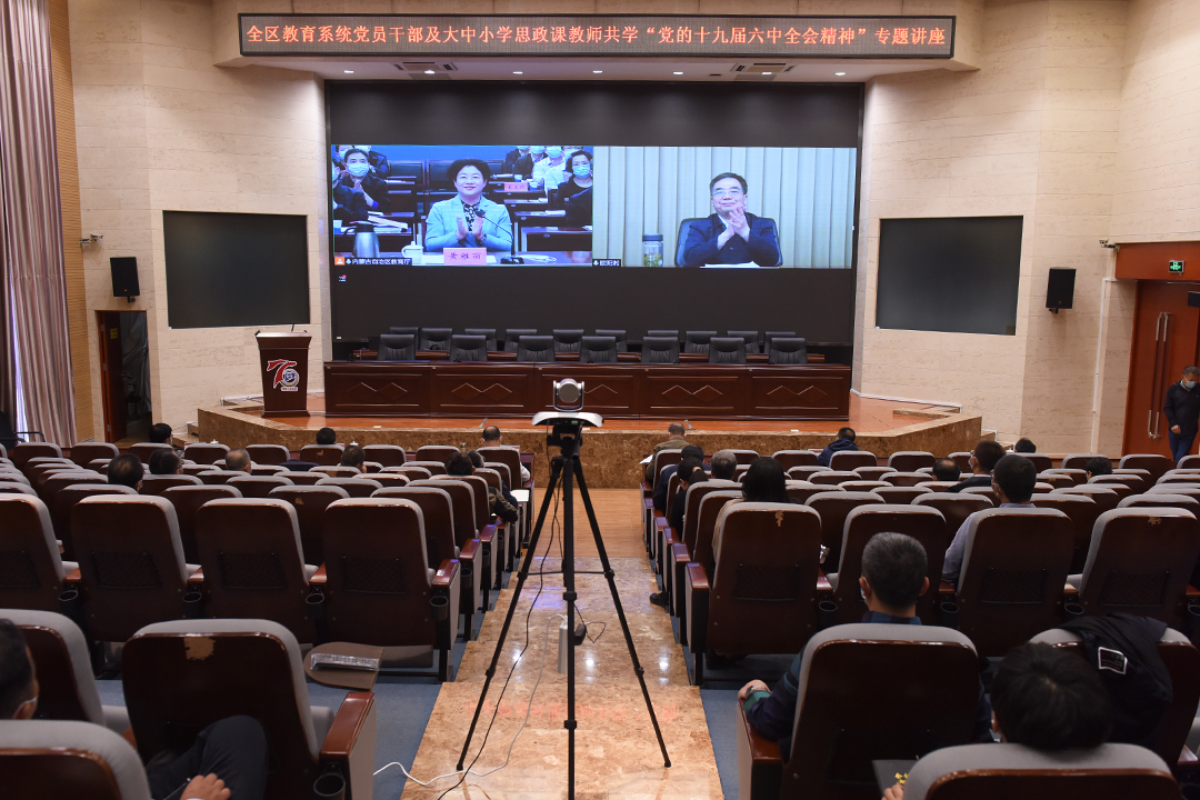 为深入学习宣传贯彻习近平新时代中国特色社会主义思想和党的十九届六中全会精神,4月7日,我校积极组织校领导、各职能部门和教辅单位主要负责人、各分党委(党总支)书记、全体思政课教师、辅导员、学生党员以集中学习和个人自学相结合的方式,线上收看了自治区党委教育工委、教育厅举办的全区教育系统党员干部及大中小学思政课教师共学“党的十九届六中全会精神”专题讲座。