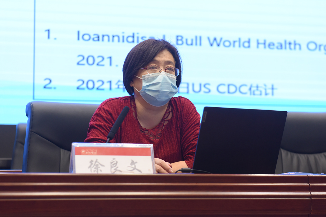 徐良文以“新冠病毒肺炎防控相关知识”为题,分新冠肺炎初识、疫情的检测报告、疫情处置3个部分进行培训,阐释了不同代际新冠肺炎病毒的特点,强调了接种新冠肺炎疫苗的重要性;指出了防护装备穿脱、清洁消毒处理等重要环节中可能存在的误区;并结合学校工作实际,重点强调了应急物资储备、特殊区域消杀、防疫废弃物处理、临时隔离场所设立、志愿服务队伍建设等疫情防控期间需要关注的工作。徐良文作为始终奋战在抗击疫情一线的战士,用她的亲身经历和大量现实案例,为我校进一步落实好疫情防控工作提供了专业性、实用性俱强的有力指导。