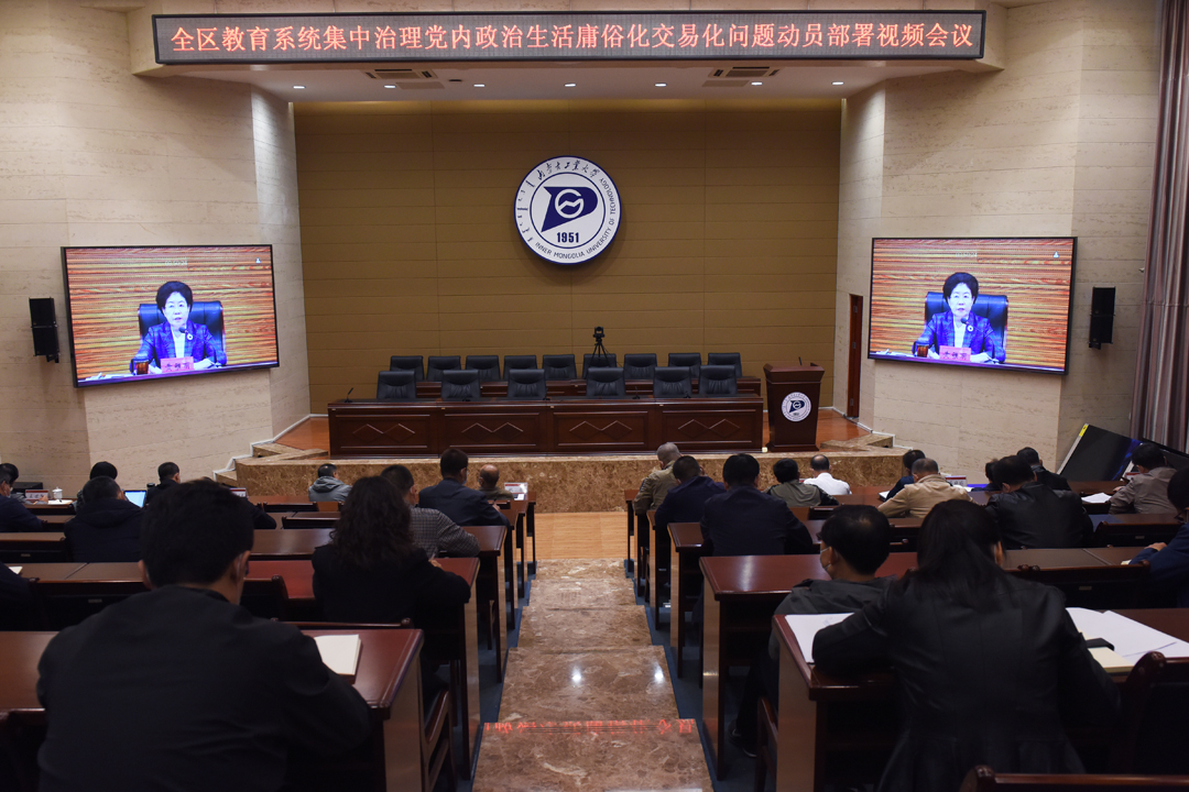 4月15日,全区教育系统党内政治生活庸俗化交易化问题集中治理动员部署会以视频会议形式召开。我校在新城校区明德楼第二报告厅设立分会场。全体在校领导班子成员,各职能部门和教辅单位主要负责人,各学院书记、院长参加会议。