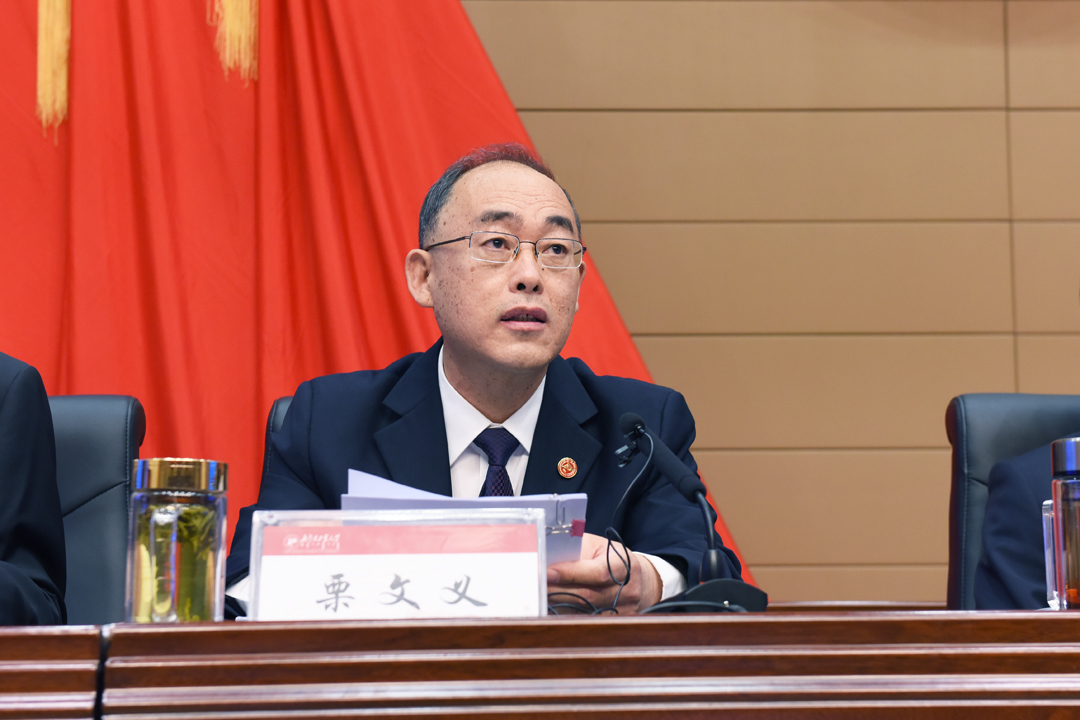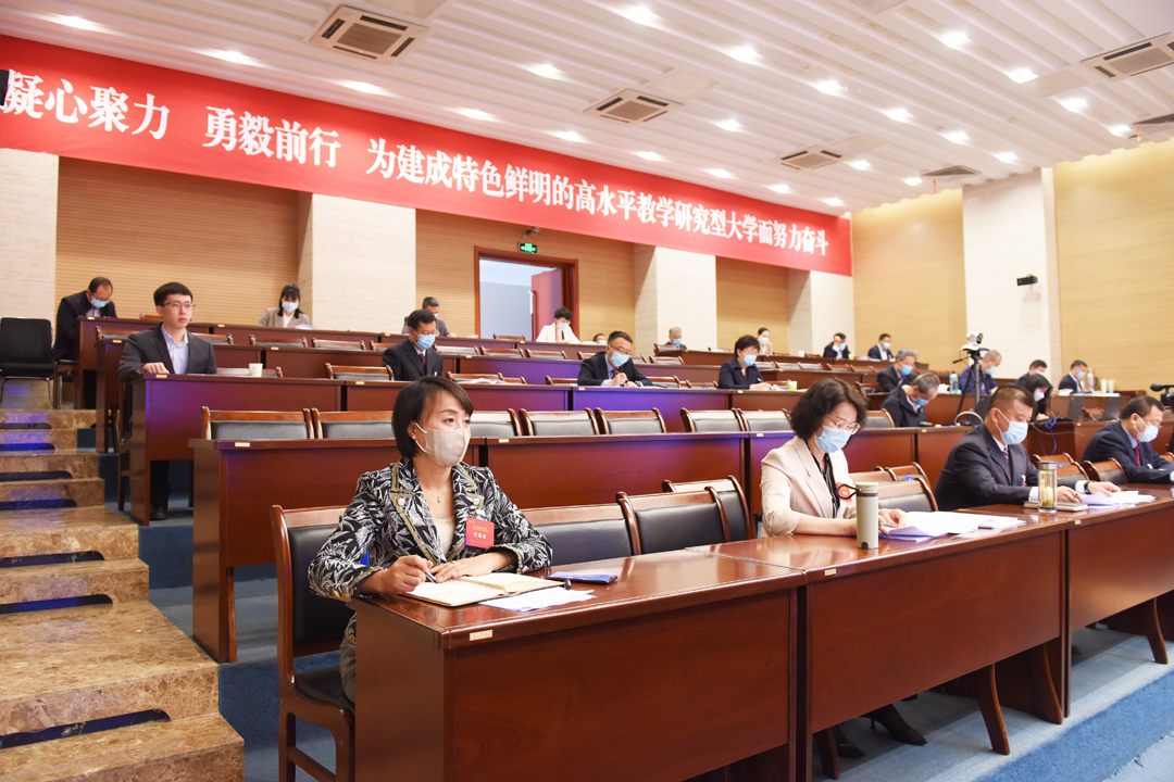 孙国权作总结讲话。他代表学校党委向大会的圆满召开表示热烈的祝贺,向与会代表和全体工作人员的辛勤付出表示衷心的感谢。他对做好今年各项工作提出五点意见。一是,政治站位要有高度,着力把学校建设成坚持党的全面领导的坚强阵地。要以习近平新时代中国特色社会主义思想为指导,认真学习贯彻习近平总书记关于教育的重要论述、关于内蒙古工作的重要指示批示精神,深入学习贯彻党的十九届六中全会精神,深刻领会“两个确立”的决定性意义,不断增强“四个意识”、坚定“四个自信”、坚决做到“两个维护”,坚决贯彻党中央各项决策部署,坚决落实各项政治任务和政治要求,强化理论学习,加强思想政治建设,打赢疫情防控攻坚战,守住校园安全稳定底线。二是,立德树人要有效度,着力把学校建设成培养社会主义建设者和接班人的可靠阵地。要把全面贯彻新时代党的教育方针作为头等大事、首要任务,坚持把立德树人成效作为检验学校一切工作的根本标准,以构建高水平人才培养体系为目标,深化“五育并举”“三全育人”综合改革,合力构建德智体美劳全面培养的教育体系;加强校风、教风、学风建设,多管齐下、协同发力,拿出一系列实招、硬招,助力人才培养质量提升;深入贯彻中央和自治区党委民族工作会议精神,不断铸牢中华民族共同体意识。三是,融入大局要有深度,着力把学校建设成服务自治区高质量发展的重要阵地。要紧紧围绕自治区发展定位,增强战略思维,提高大局意识,加快推进人才培养供给侧改革、科技创新供给侧改革以及人才队伍建设需求侧改革,优化学科专业结构,完善人才培养方案,推进科研成果转化落地,主动服务和融入新发展格局,不断为自治区经济社会发展提供人才、科技和智力支持。四是,改革创新要有力度,着力把学校建设成治理体系和治理能力现代化的示范阵地。要加快改革创新步伐,激发学校事业发展内生动力和发展活力,有力深化教育评价改革,稳步实施教育教学改革,深化人才工作改革和编制总量改革,积极探索科研工作改革,稳妥推进机构设置与职能调整改革,进一步解放思想、更新观念,谋求学校事业发展新跨越。五是,办学治校要有温度,着力把学校建设成师生干事创业、安居乐业的温暖阵地。要坚持以师生为中心的发展理念,把服务师生、关爱师生、贴近师生作为天职和责任,把师生的期盼和呼声作为头等大事来谋划研究;要把为师生办实事办好事坚持下去,积极回应、认真解决师生员工关心关切的热点难点问题,进一步提升师生员工的获得感、幸福感和安全感。孙国权强调,学校正处于改革发展的关键时期,抓住机遇、实现建设高水平大学的建设目标,取决于全体教职员工的共同努力。全校上下要以时不我待、只争朝夕的紧迫感和精神状态促改革、谋发展,以踏石留印、抓铁有痕的务实作风抓落实、求突破,有力推进内涵式发展和高质量建设,以优异成绩迎接党的二十大胜利召开。