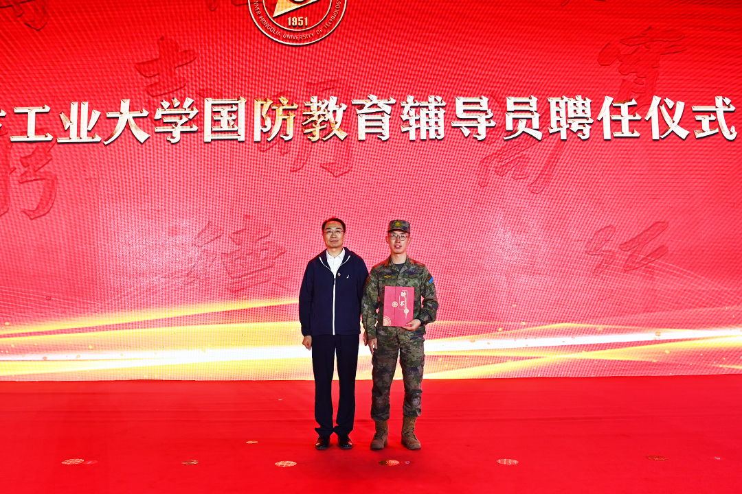 校党委委员、副校长吕晓琪为国防教育辅导员周洲颁发聘书 |