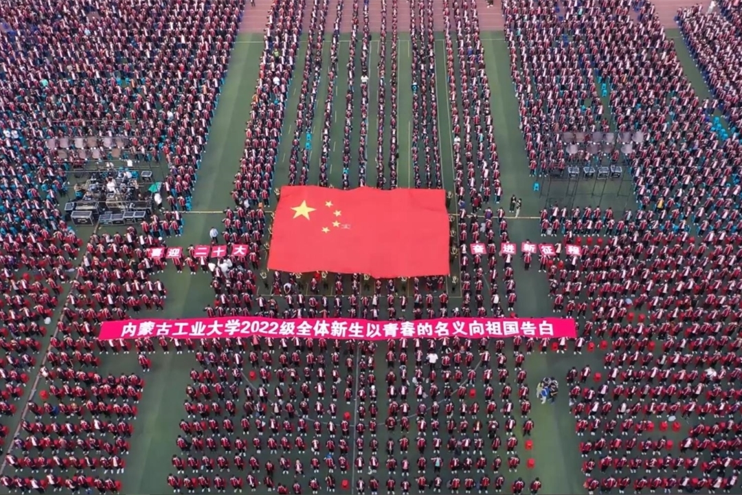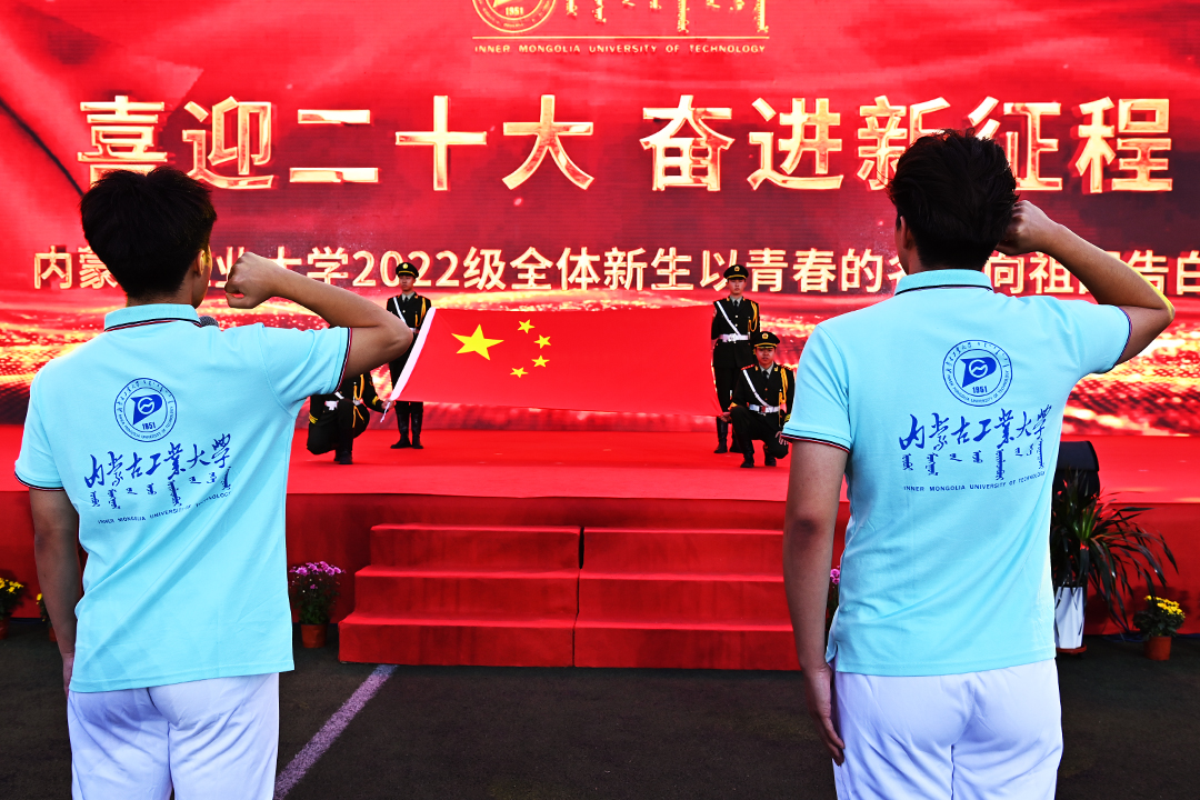 全体2022级新生以青春的名义向祖国深情告白——“请党放心,强国有我”!近万人齐聚的运动场,如波涌动的巨型五星红旗,迎风招展的各类旗帜,与青春告白的铮铮誓言一起,构成了一幅内工大学子奋发图强、矢志报国的美丽画面。