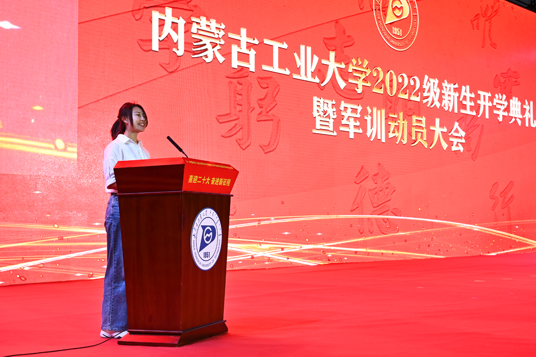 土木工程学院贺玲丽老师、航空学院景慧敏同学代表在校师生发言。他们向新同学表示欢迎和祝贺,并对新同学未来的学习、生活提出中肯建议和深切寄语,劝诫新同学要珍惜当下、珍惜拥有,勇于挑战自我、合理安排时间,怀揣最初的梦想和最纯粹的热忱,在内工大度过人生中最精彩、最幸福、最美好的一段时光。