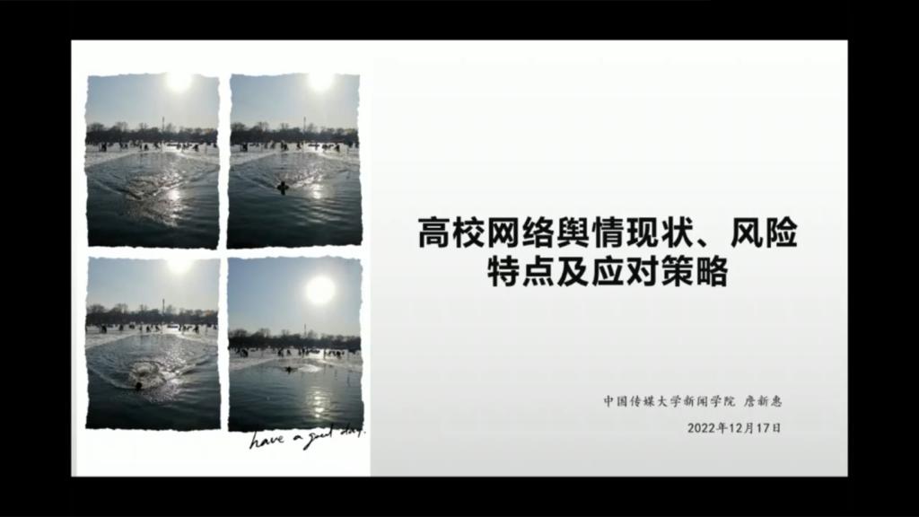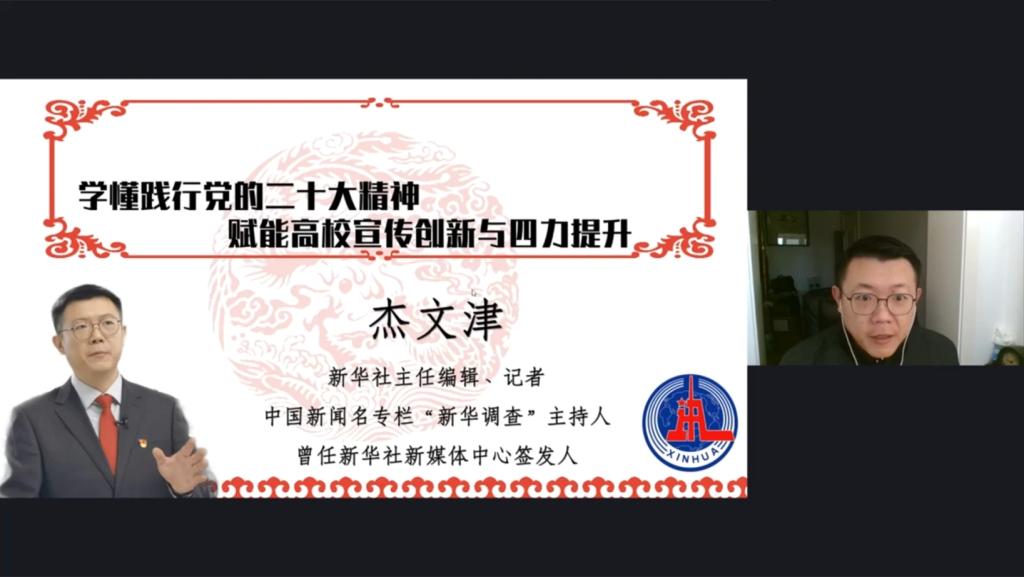 为深入学习宣传贯彻党的二十大精神,进一步加强校园新闻宣传队伍建设,12月16日至17日,我校举办新闻宣传与舆情应对暨校园新闻宣传队伍综合能力提升培训班。全校各单位新闻通讯员、新媒体平台管理员和相关职能部门工作人员共144人线上参加培训。