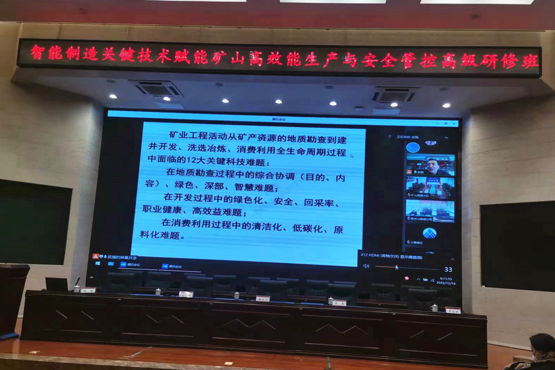 此次研修班为期5天,以线上方式举办。中国工程院院士武强、“长江学者奖励计划”青年学者杨胜利教授以及来自中国矿业大学、北京林业大学、内蒙古科技大学和我校的专家学者,分别就矿山环境问题和水害防控与智能信息平台、厚煤层绿色智能开采关键技术、高效能生产条件下煤矿高硫煤脱硫技术等10个专题与学员们进行交流探讨。