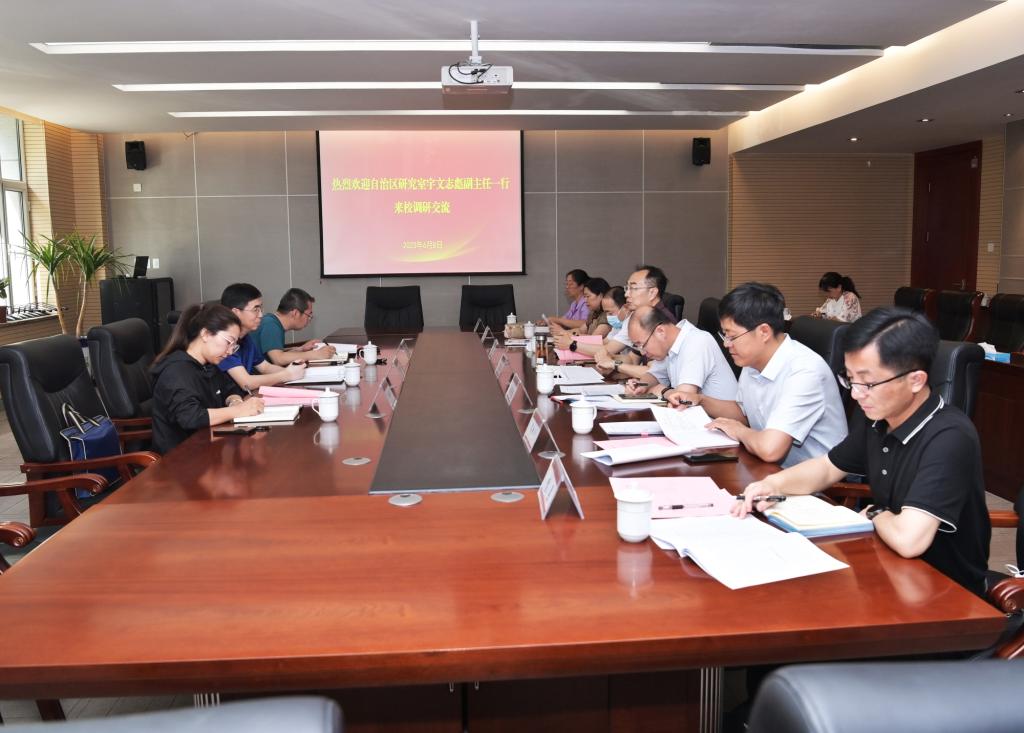6月8日,自治区研究室副主任宇文志彪带队来我校调研交流。校党委书记李占峰会见宇文志彪一行。副校长吕晓琪主持交流座谈会,教务处、科研处、研究生院、招生就业处、发展规划与学科建设处、党委教师工作部(人事处)等部门和学院负责人参会。