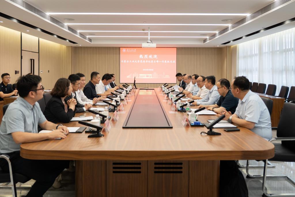 走进广东工业大学,调研组参观了学校省部共建精密电子制造技术装备国家重点实验室并召开座谈会,双方围绕粤蒙高校联盟建设和两校“一对一”精准合作进行深入交流。广东工业大学党委书记白建刚出席座谈会,党委常委、副校长王振友主持座谈会。李占峰介绍粤蒙高校联盟筹建和学校特色学科建设情况,希望与广东工业大学在卓越人才培养、特色学科专业群共建和能源装备制造、先进材料、新型化工等领域开展科研合作和成果转化,共同推动粤蒙教育科技人才一体发展。白建刚对我校调研组一行表示欢迎,并介绍了学校的办学成果,期待粤蒙高校联盟早日运行,切实发挥两地优势,汇聚两校特色资源,紧紧围绕特色优势产业需求,在学科专业共建、科研协同创新、人才共育共享、成果转化落地等方面取得实质性合作成果,打造区域教育合作交流示范样板。