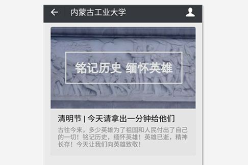 此外,学校官方微信平台开展“铭记历史,缅怀英雄”线上传播活动,校团委“工大青春志”官方微信平台开展“请给他们一分钟”网上祭英烈活动,青年学生广泛参与,积极转发、评论、点赞。