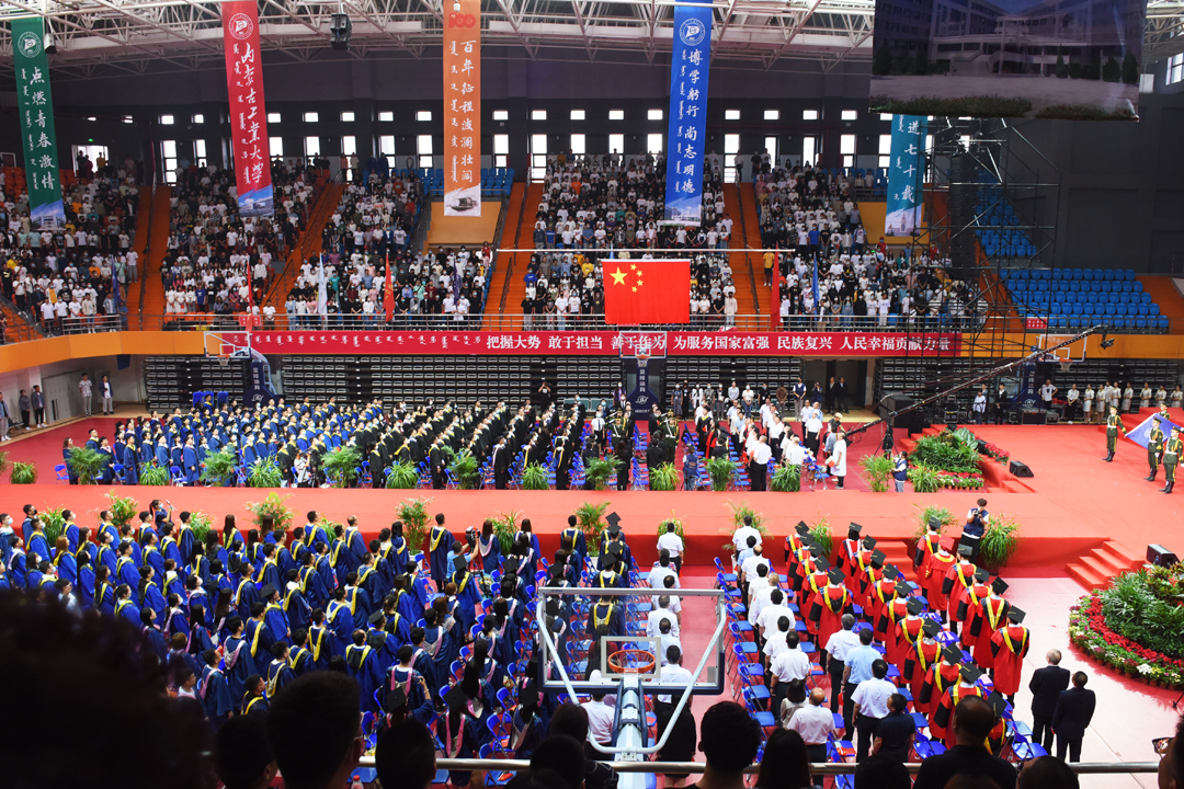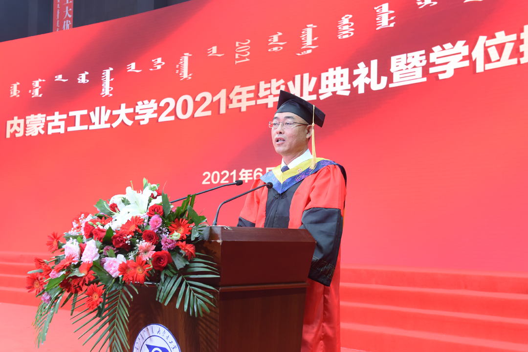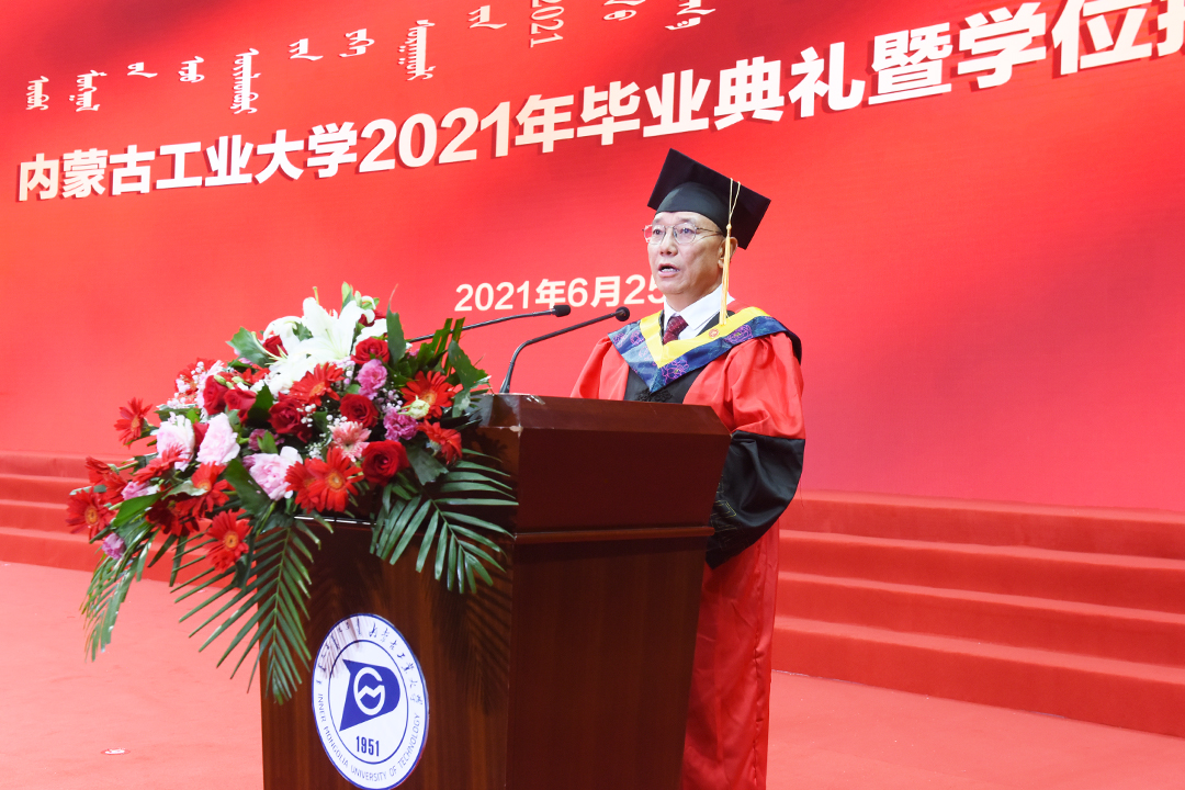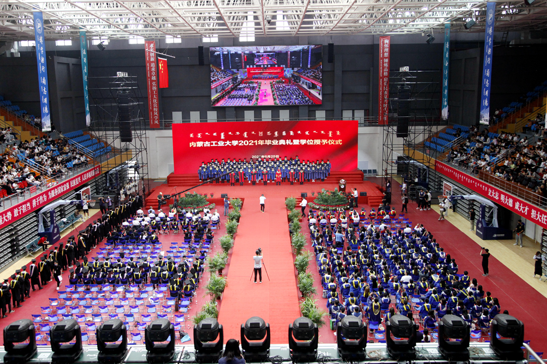 6月25日上午,内蒙古工业大学2021年毕业典礼暨学位授予仪式在新城校区卓越体育馆隆重举行。全体校领导、党委委员出席活动。副校长韩永全主持毕业典礼。校党委副书记栗文义主持学位授予仪式。3000余名2021届毕业生以及相关职能部门负责人、各学院党政负责人、教师代表、学生家长代表参加毕业典礼暨学位授予仪式。