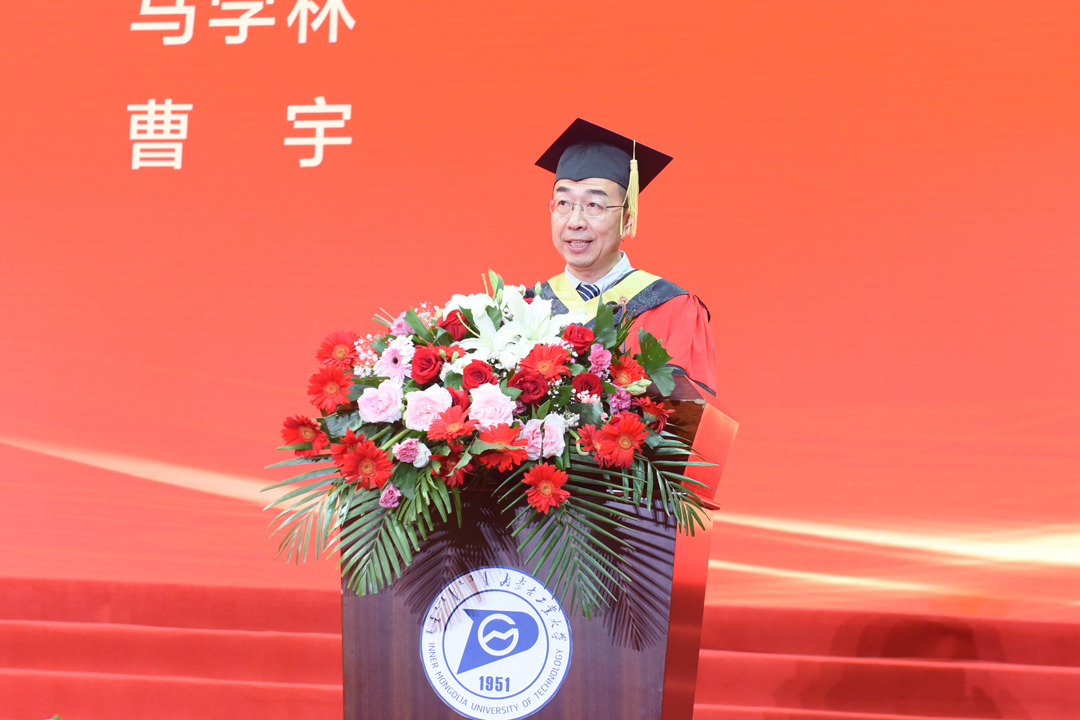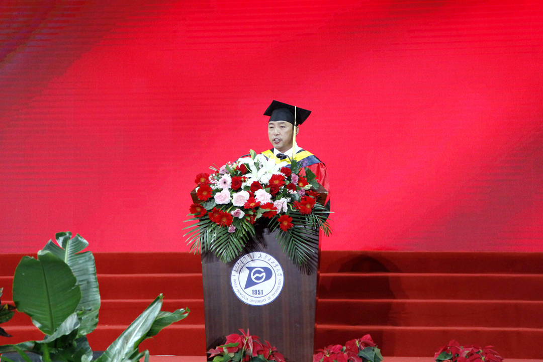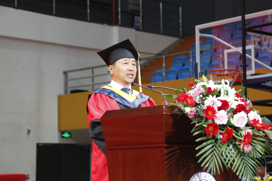 校长姚德代表学校向圆满完成学业、即将踏上人生新征程的6373名毕业生表示最热烈的祝贺,向一路培育、帮助、陪伴毕业生成长的老师、同学及亲友表示最崇高的敬意。他细数同学们在这片校园里挥洒的青春、取得的成绩;勉励大家成长在这个伟大的时代,就要融入这个时代,更要奋斗于这个时代;并深情寄语同学们:要厚植爱国情怀。无论身在何处,无论从事何种职业,都要秉持家国情怀,将个人的前途命运与国家的前途命运紧密相连,在实现中华民族伟大复兴的新征程中实现人生价值、升华人生境界,将爱国之情、报国之志转化为奉献祖国、奉献人民的不竭力量。要练就过硬本领。多读有字之书,广泛积累,增长才干,锤炼品格,以真才实学服务于社会、服务于人民。多读无字之书,从实践中锻炼毅力,增长勇气,积极面对人生的各种挑战。要勇于担当作为。作为建设新时代的主力军,要牢记对祖国、对人民、对中华民族的时代责任,把个人奋斗同国家的前途和民族的命运有机结合,让青春的追求同社会的需要和人民的利益紧密相连,勇立时代潮头,争做时代先锋。