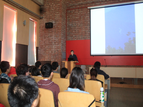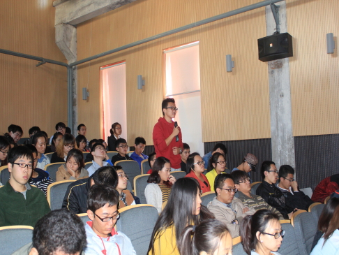 韩冬青从建筑秩序、设计策略两方面介绍了设计的形式和方法,通过举案例和结合自身的设计体会等讲述了设计的发展过程——技术的组合,诠释了设计的起点。他用幽默风趣的语言回答了老师、同学们提出的问题,赢得阵阵掌声。