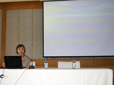 蔡安妮教授主要研究领域为多媒体通信、图像与视频处理、模式识别。报告会上,蔡安妮从多媒体通信技术的进展、视频智能处理的关键技术与应用等方面进行了详细阐述,并为青年教师从事教学与科研工作提出一些建议。同时,她还与师生进行有效互动,深受师生欢迎。
