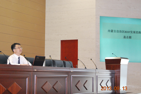 报告中,盖志毅教授从8337发展思路的具体含义谈起,详细解读了“8个发展定位”、“3个着力点”、“3个更加注重”以及与发展定位息息相关的“7项重点工作”,举例说明了8337发展思路是历史选择的结果,并提出需要解决发展不足这一内蒙古发展突出的阶段性特征。他还对贯彻8337战略将内蒙古全面推进科学发展的新阶段措施进行了详细说明。